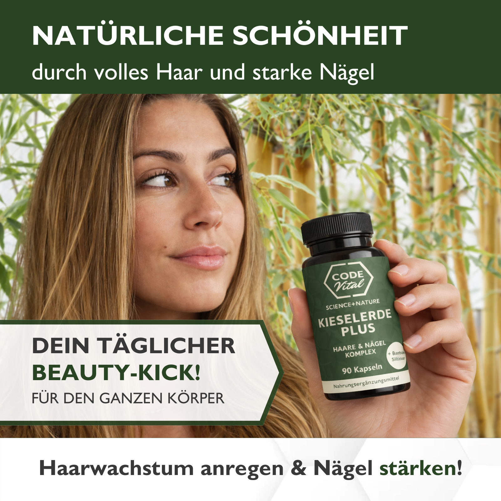 Unterstreiche deine natürliche Schönheit durch volles Haar und starke Nägel!